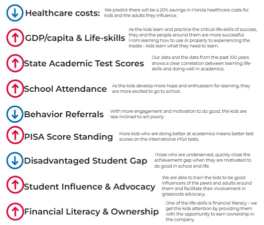 The kids platform: Heroic Learning (www.heroiclearning.com) is the "Minecraft-like" world leading kid/family-driven, game-based, AI and token powered life-skills learning platform for kids and their family members. Over a decade teaching over 10 million students – we are now ready to scale globally and fix the big issues like the healthcare crisis. We have the data that proves that with just 23 minutes a day in our game, and without any classroom, teacher or parent time, the platform works - guaranteed. To see some of the data - click here