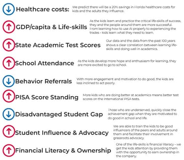 We are building an army of millions of family "influencers and owners" to reverse America's decline by bringing together health, education and economics (what everyone agrees can improve) and implementing the following: